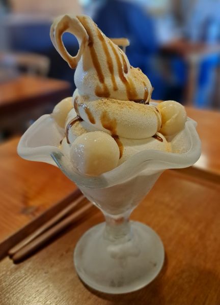 食後のデザートは豆乳ソフトや呉豆腐が入った「平川屋パフェ」で、最後までお豆腐専門店ならではの味を満喫。