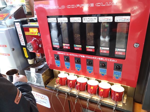 ここでは好きな豆を選んで、その場で挽きたてのドリップコーヒーが飲めるんですって!